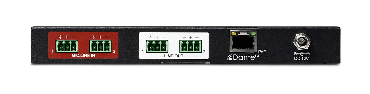 2 I/O analog <> Dante unit, including mic pres with +48V